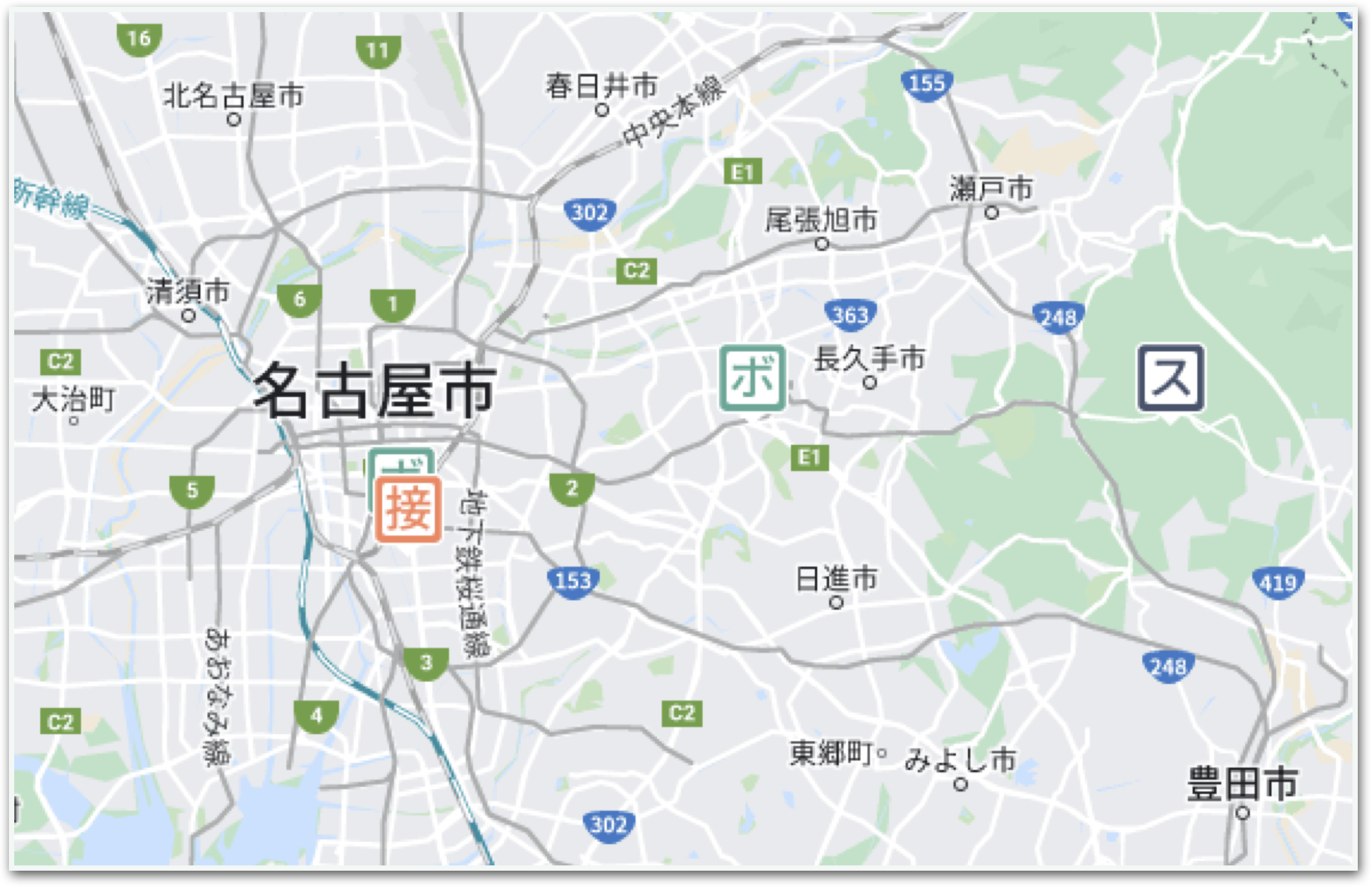 候補の中から該当のものを選ぶとその場所がマップエリアに表示されます。